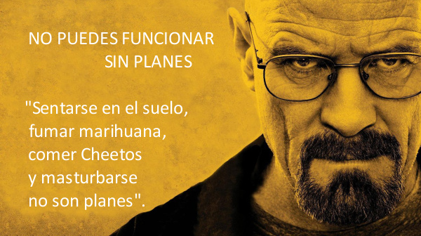 «Planes. Necesitas planes», dice Heisenberg. «Hay gente que necesita lo que haces, pero si no pueden llegar hasta ti, tendrás que llegar hasta ellos. Eso significa darlo todo: el tiempo y las energías. Sentarse en el suelo, fumar marihuana, comer Cheetos y masturbarse no son planes».