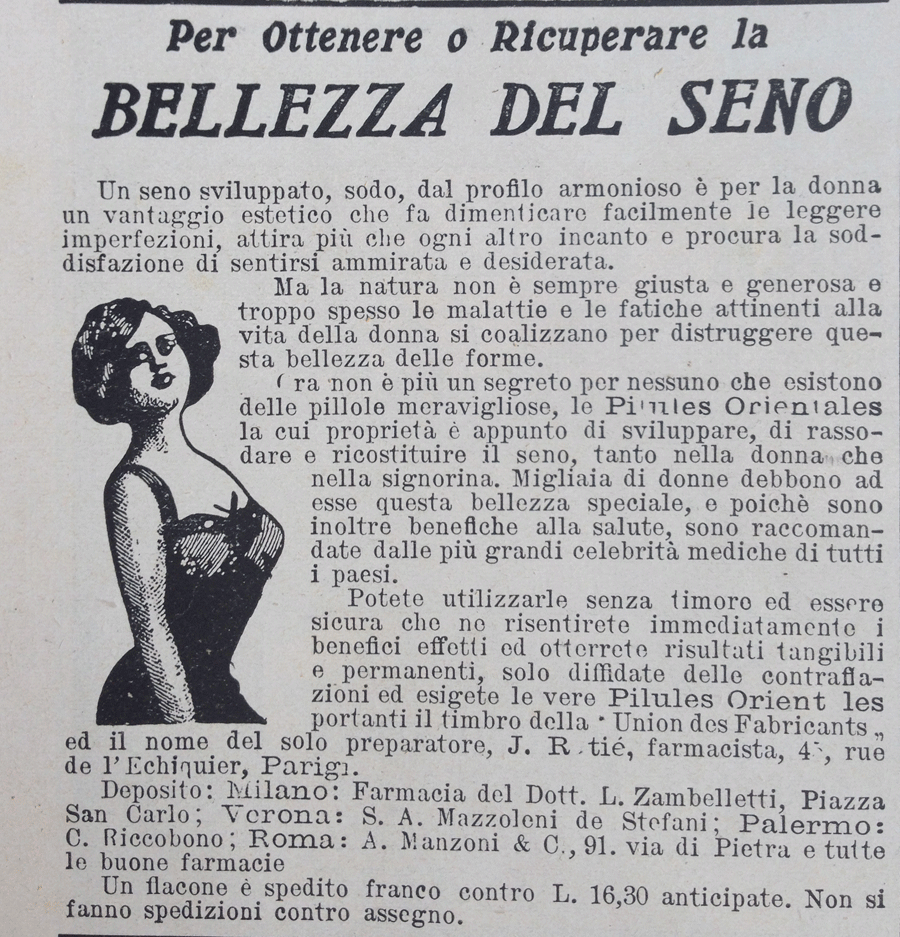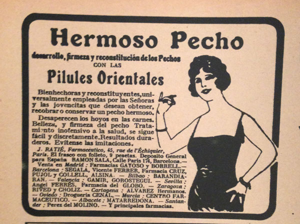 La fotógrafa piensa que «el cuerpo de las mujeres lleva mucho tiempo siendo escudriñado y adorado, criticado y controlado». También ha sido un filón para los mercaderes de la belleza. Y desde hace tiempo. Es difícil encontrar un periódico de principios del XX donde no aparezca un anuncio para conseguir un «hermoso pecho».
