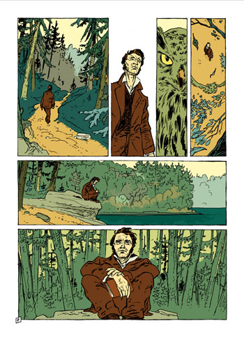 El poeta, filósofo e historiador de Massachusetts (EE UU) ha vuelto a la actualidad dibujado por Maximilien Le Roy. El ilustrador francés escribió y dibujó La vie sublime y, en España, Impedimenta se ha encargado de su traducción y publicación.