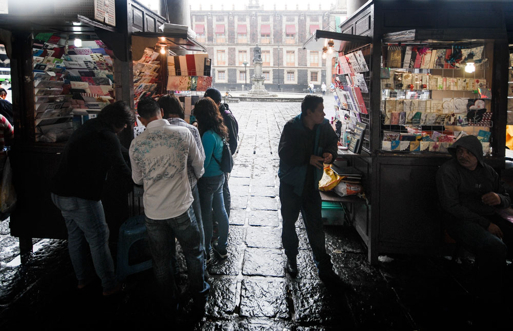 plazaEl pórtico mexicano se convirtió en una oficina sin puertas ni pared hace más de tres siglos. Allí se establecieron unos escribientes que, con sus papeles y sus plumas de ganso, redactaban las cartas y comunicaciones de muchas personas iletradas o que necesitaban la ayuda de un escribano para enviar una misiva o rellenar un formulario.