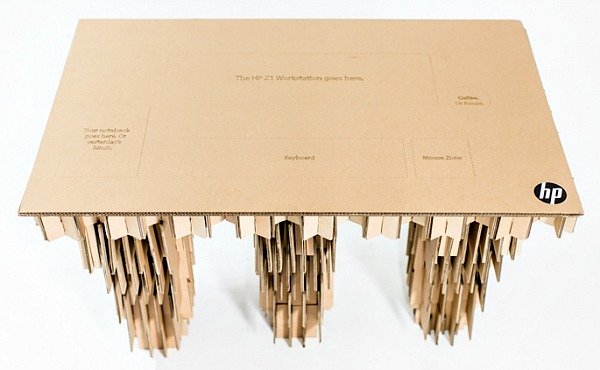 Fue con motivo del lanzamiento de la primera estación ‘todo en uno’ de 27 pulgadas que acaba de lanzar en ese país HP. Su agencia de publicidad, Goodstuph, tuvo la idea de fabricar una caja totalmente de cartón, que se dividía en 250 piezas que al ser ensambladas daba como resultado una mesa de trabajo de 1,6 x 1 metros.