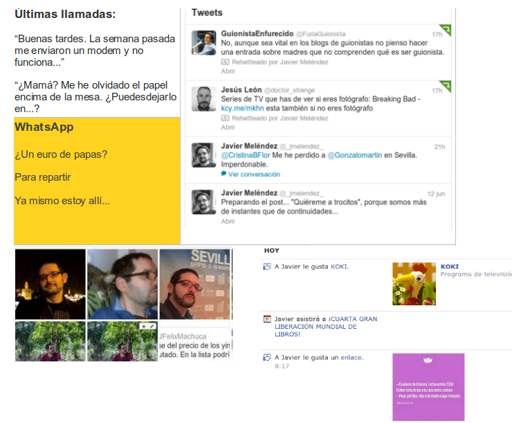 «Soy yo y mis circunstancias” debe ser cambiado por “soy yo y mis trocitos”. Es decir, los fragmentos que hay míos desperdigados en las redes sociales, en los correos electrónicos, en las conversaciones telefónicas y de mensajería instantánea. Sí, soy yo y mis trocitos, o al menos, eso soy para ti.