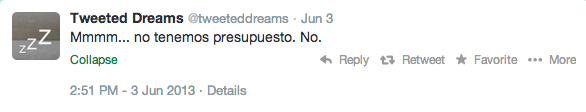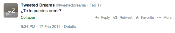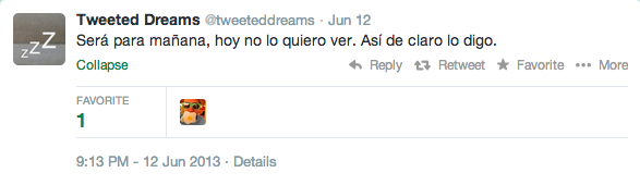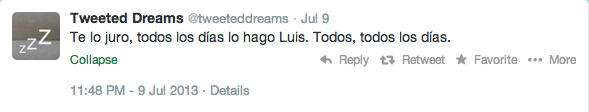 El 3 de marzo de 2013 publicó por primera vez sus palabras dormidas en Twetteddreams. Aquella noche, a las 3.00 de la mañana, dijo:
