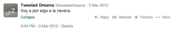El 3 de marzo de 2013 publicó por primera vez sus palabras dormidas en Twetteddreams. Aquella noche, a las 3.00 de la mañana, dijo: