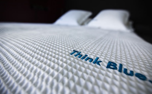 La ducha en la habitación Think Blue cuenta con un sistema de cromoterapia e iluminación a través de la acción del agua en un rotor, sin necesidad de luz eléctrica, y todo el material textil de la estancia cuenta con el anagrama Think Blue.