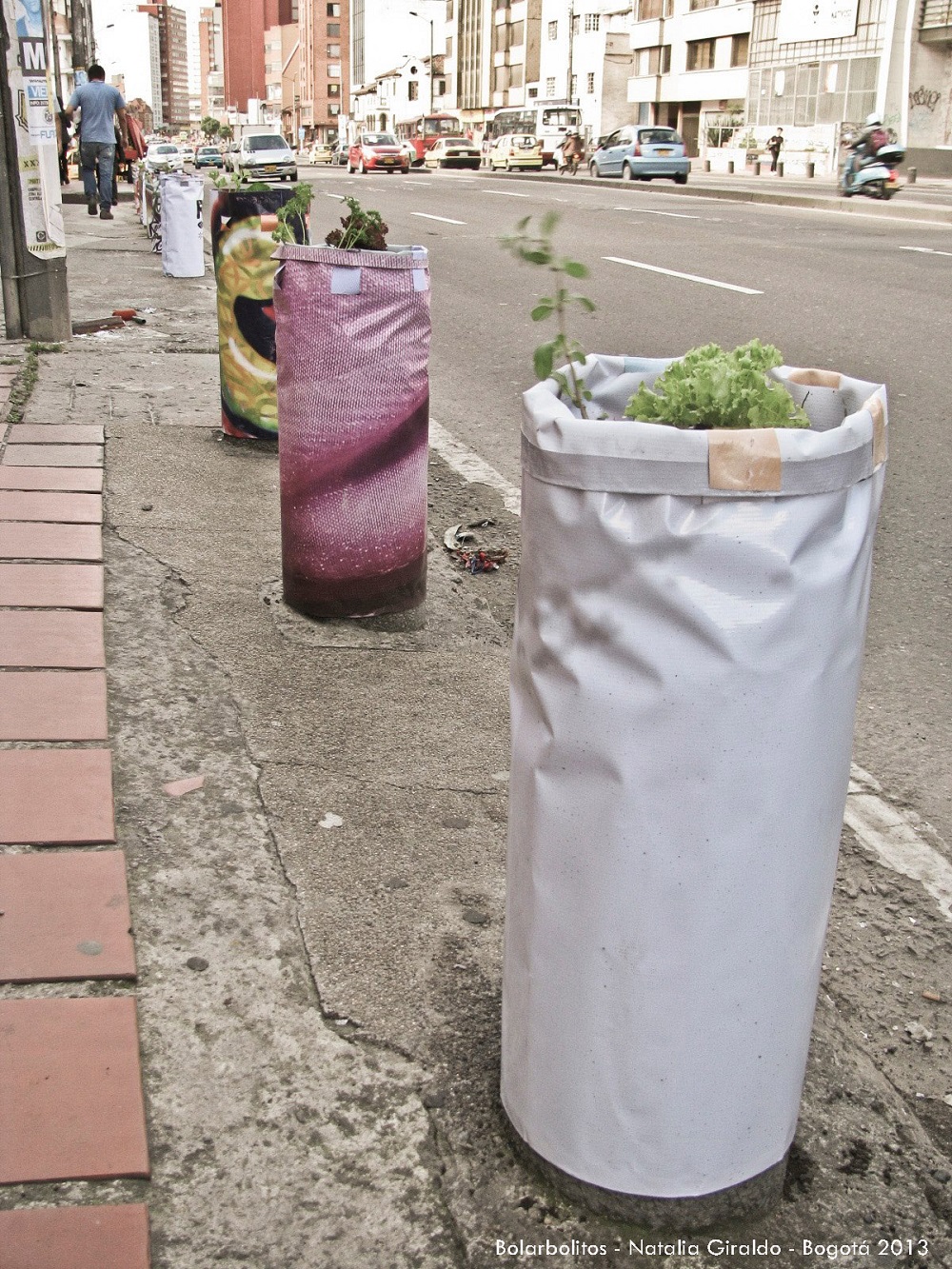 Este joven de 25 años, que se define como diseñador industrial y activista de la bicicleta, cuenta que el concepto original era realizar una serie de seis intervenciones urbanas junto a los estudiantes de la escuela danesa Kaos Pilots, que realizaban sus tres meses de formación en el exterior en Colombia. Luego escribirían un paper sobre el tema. “Todo muy científico”, asevera. Pero en una jornada de trabajo, con unas cervezas de más, alguien (“no recuerdo quién”) preguntó por qué no hacían 100. “Todos nos cagamos de la risa”, cuenta. Pero uno de los estudiantes se lo propuso a los coordinadores.