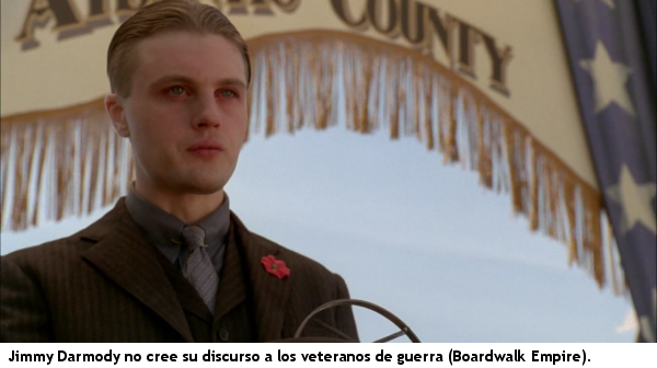 Cuatro historias con soldados. Cuatro de las seis series nominadas a mejor drama en los pasados Emmy 2012. Soldados que van a la batalla (Juego de tronos) y otros que regresan de guerras reales… Sin embargo, allá en los campos de batalla quedaron las cáscaras de lo que fueron: el soldado James Darmody, veterano de la primera guerra mundial, vuelve cargado de odio (Boardwalk Empire); el teniente Donald P. Draper, Corea, no es Don Draper (Mad Men); el sargento Nicholas Brody, Iraq, no es el papá americano que se marchó (Homeland).