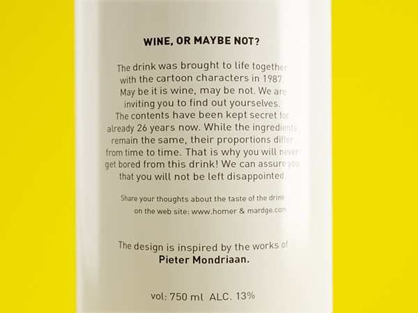 La nueva silueta del matrimonio amarillo procede de Moscú. Dos diseñadores, Constantin Bolimond y Dimitry Patsukevich, mezclaron a los personajes de Los Simpsons con notas del neoplasticismo del pintor Piet Mondrian y el resultado fue este par de envases que, por el momento, están vacíos.