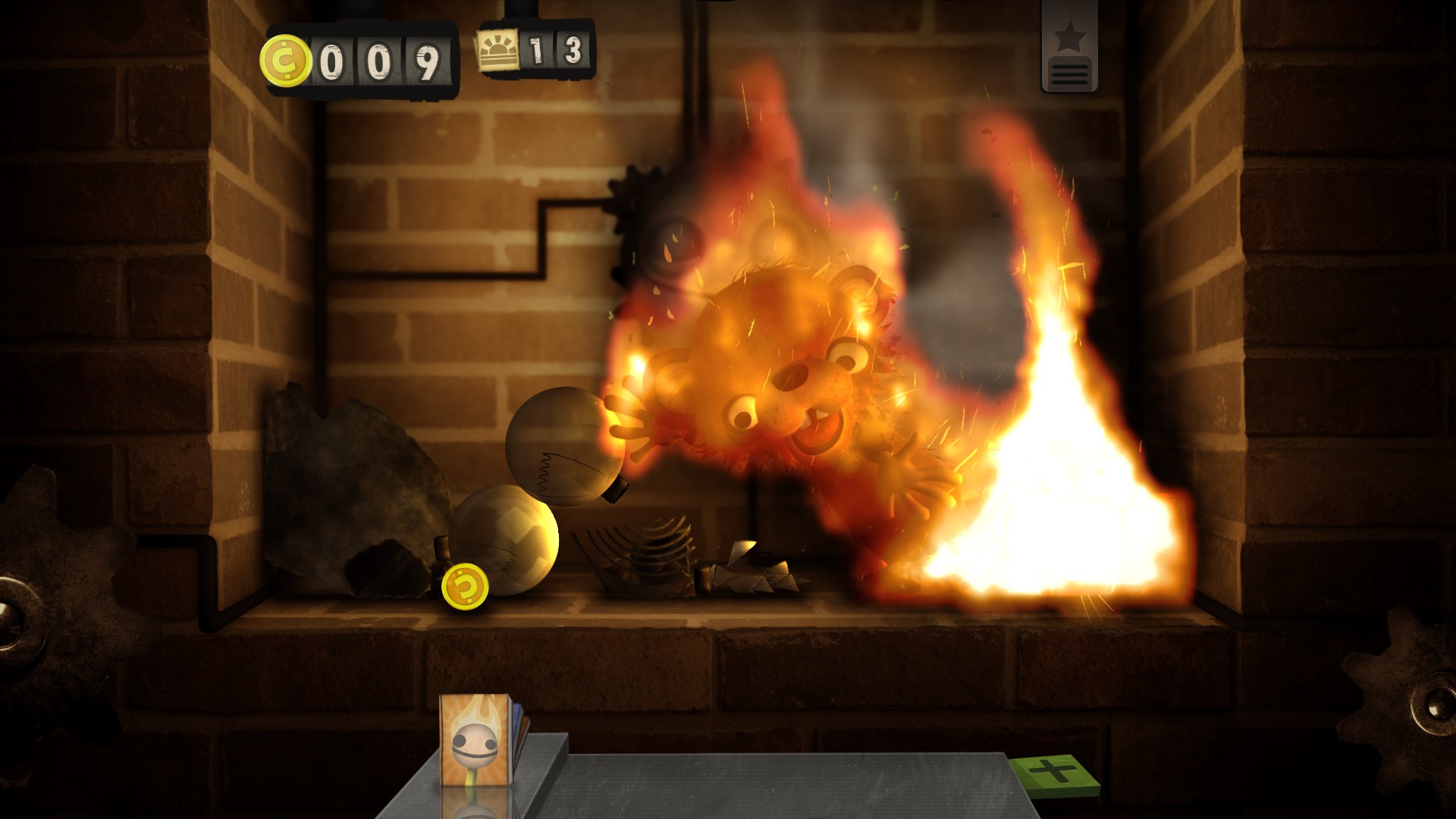Para avanzar en la historia de Little Inferno, tenemos que hacer combos. Quemar cosas juntas, vaya. El juego nos da una lista de nombres que hay que interpretar combinando objetos y prendiéndoles fuego: para el combo ‘Señora de los gatos’ hay que quemar una ancianita y un gato; para el combo ‘Noche de cine’, una televisión y una mazorca de maíz; para el combo ‘Polinización’, unas semillas y el capullo de una mariposa. Estos ejemplos parecen muy bobos, pero el centenar de puzles semánticos que propone el juego es entretenido y los combos están llenos de ideas, bromas y guiños a otros juegos. Muchos se quedan aquí y no llegan a los otros niveles de lectura que tiene el juego. De hecho, un artículo de Wired señalaba que los jugadores que más lo elogian en las reviews de la App Store son los que no están entendiendo nada, los jugadores de los que el juego se burla. Es una parodia redonda. Es la @masaenfurecida de los videojuegos, o algo así.